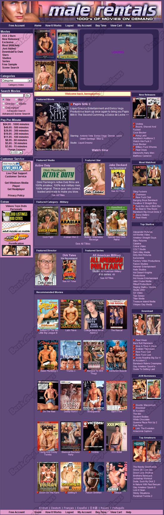 Male Rentals offers you the chance to stream, rent, or download as much porn is you want. You buy your credits and then simply view your movies. It's all good quality and regular updates ensure value for money.